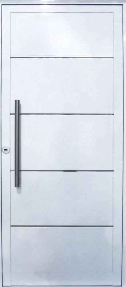 Con detalles en acero inoxidable, esta puerta no solo proporciona una estética moderna, sino que también garantiza una mayor resistencia a la corrosión y al desgaste. Su diseño de cinco tableros le otorga un toque elegante y sofisticado, adaptándose perfectamente a diversas decoraciones.