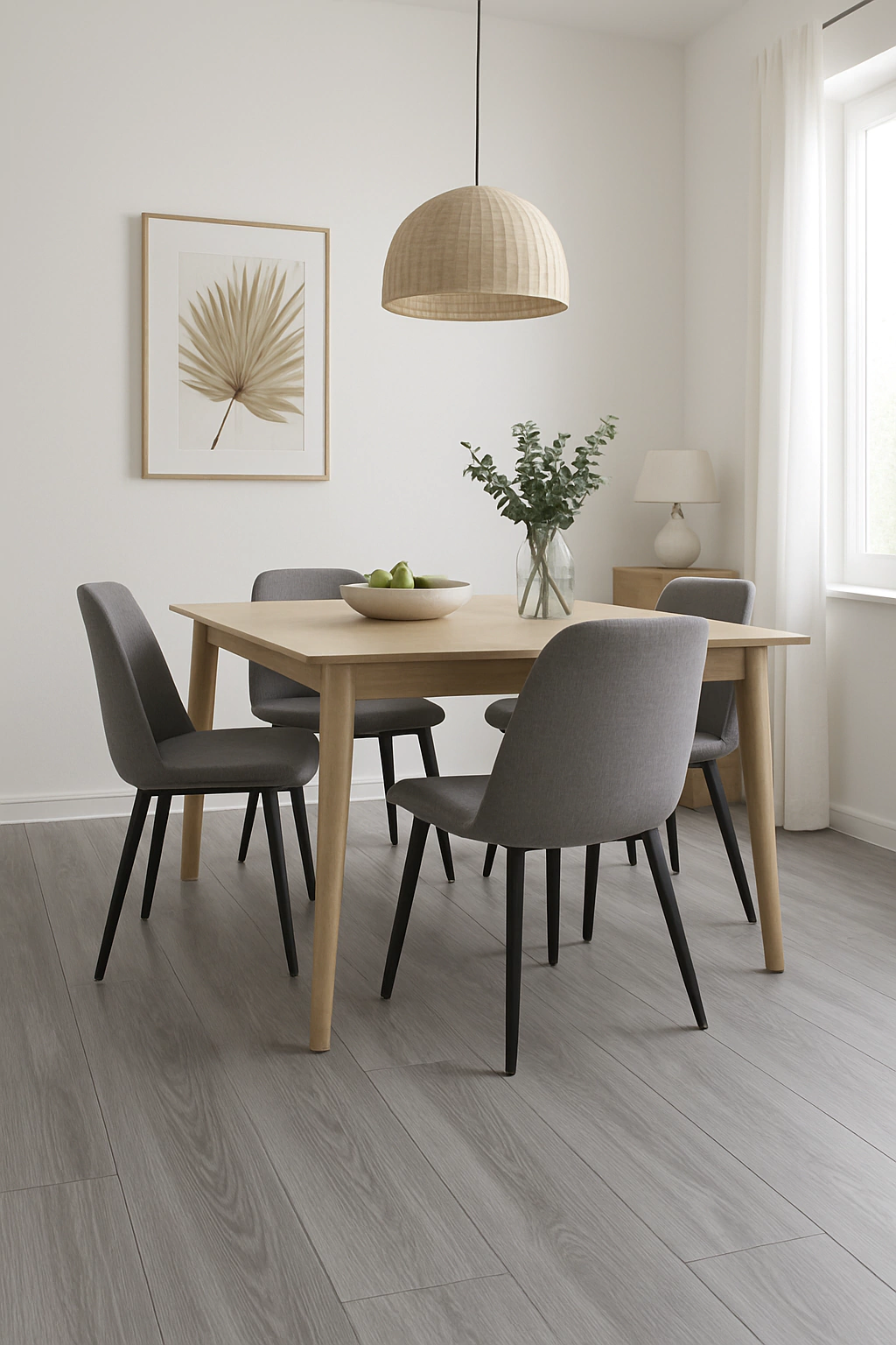 Se recomienda sumar un 10% por cortes (material que se desperdicia). Para la colocación se puede usar tanto pegamento de base acuosa como pegamento de doble contacto.